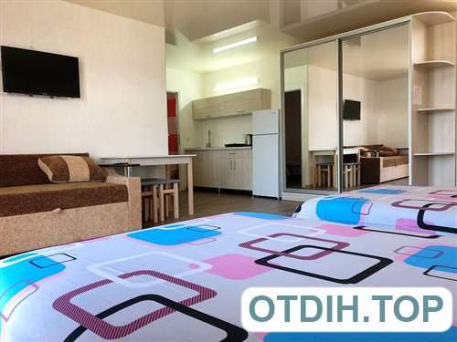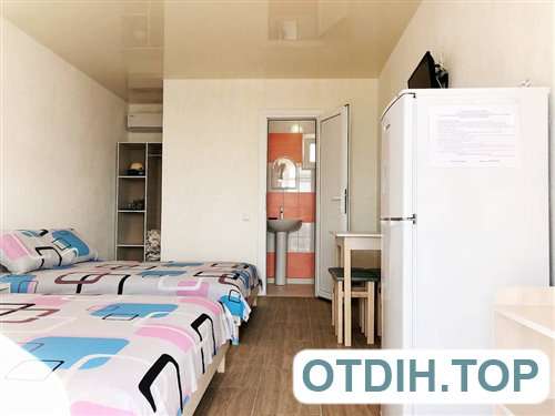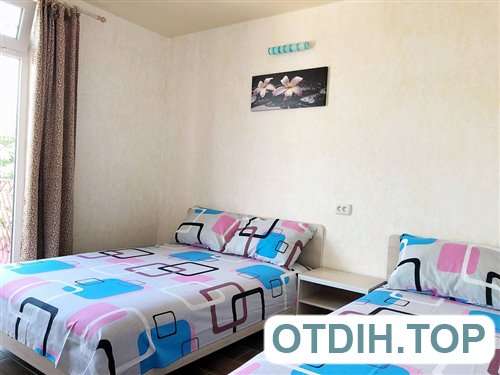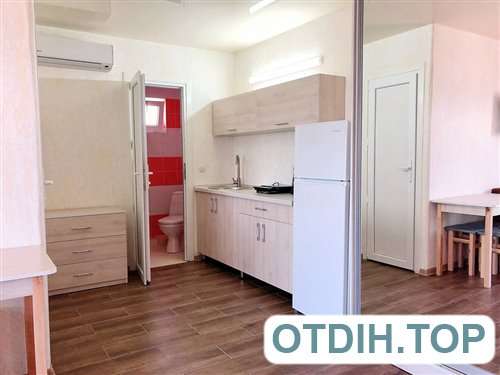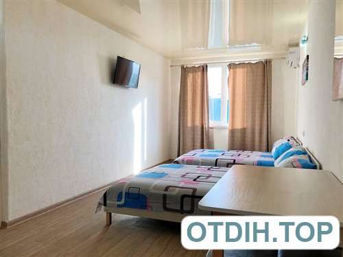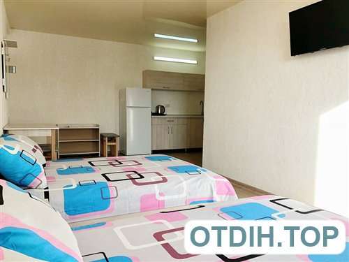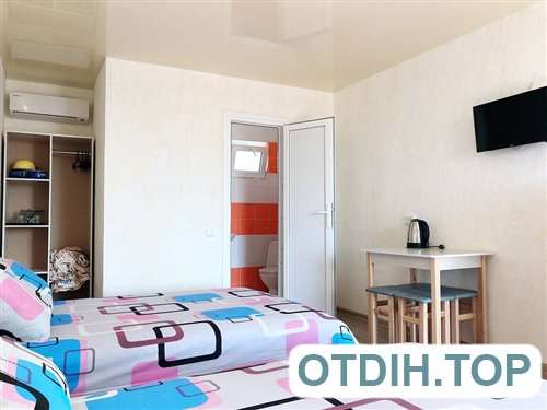 Номера располагаются в современном капитальном здании из трех этажей. Все имеют широкие панорамные окна с видом на море, а значит приятная картина будет радовать глаз на протяжении всего отдыха. Все номера в комплексе относятся к разряду люкс, что и впечатления гарантирует соответствующие. Двуспальная удобная кровать и раскладной диван позволят чувствовать себя, как дома. Сплит система даст возможность не только защитить себя и своих близких от изнуряющей жары, но и позволит комфортно себя чувствовать во время довольно прохладных вечеров бархатного сезона. Телевизионные плоские панели и подключение к спутниковым каналам дадут возможность скоротать вечер в семейном кругу. Если совсем нет желания готовить, то расположенное в пятидесяти метрах недорогое заведение с вкусной домашней кухней, поможет забыть о всех подобных хлопотах.