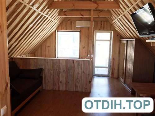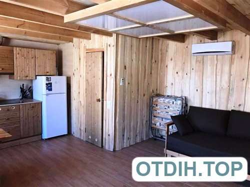 Проживание. Azov Deluxe — это три новых двухэтажных коттеджа, в каждом из которых по два номера-студии категории Люкс, где с удобствами смогут разместиться от двух до четырех человек. Все номера площадью 30 м2 состоят из спальни, душа с туалетом с бесперебойной подачей пресной воды и оборудованной мини-кухни. Спальня вмещает раскладной диван, который можно использовать, как спальное место для двух человек. Кроме этого есть телевизор с набором спутниковых каналов и обеденная зона со столом и стульями. В комплект входят постельное белье и полотенца. Мини-кухня оборудована плитой, холодильником, мойкой с вытяжкой, чайником и набором необходимой посуды. Номера на втором этаже имеют просторную мансарду с комплектом мебели на ней. В номерах бесплатно можно установить одну или две раскладушки в качестве дополнительных мест.