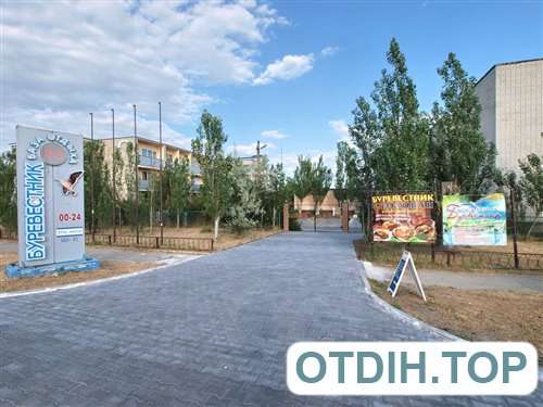 Расположена база отдыха «Буревестник» непосредственно на побережье косы Пересыпь на первой линии. Имеет собственный довольно немноголюдный пляж, на котором поддерживается идеальная чистота. Здесь установлены теневые навесы, а также кабинки для переодевания и принятия душа. Чистая морская вода, песчаный пляж, покатое дно идеально подходят для отдыха с детьми.