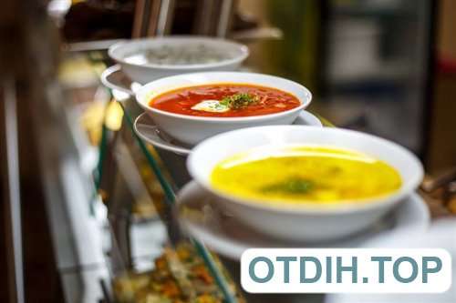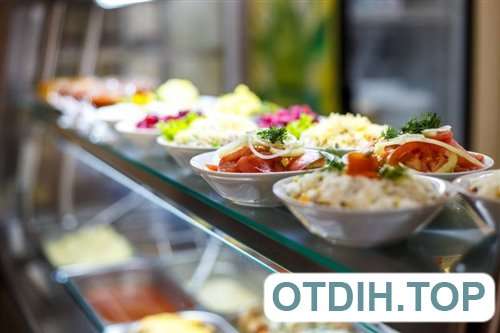 Столовая, находящаяся на базе, позволяет организовать трехразовое питание по типу «шведский стол». В меню представлены разнообразные и полезные блюда. За дополнительную плату можно воспользоваться услугами бара, кафе и магазина.