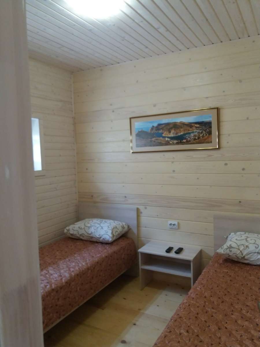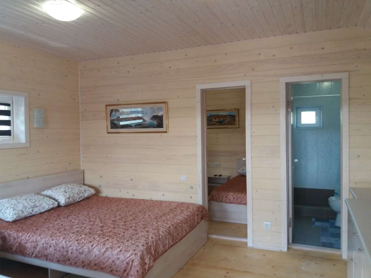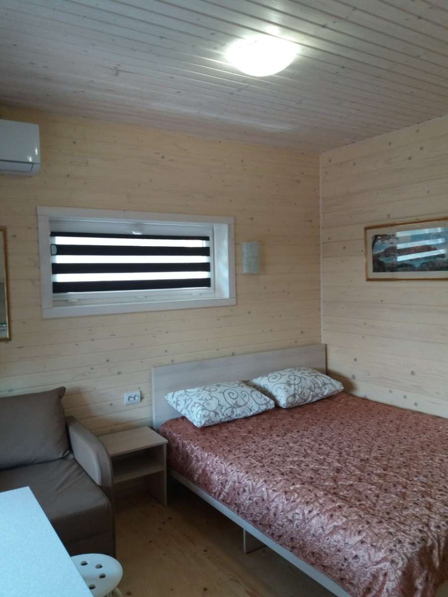 1 спальня + кухня Кухня-студия 2-хспал кровать, кресло-кровать, кухонный блок, эл.печка, эл.чайник, посуда, СВЧ, Х , К, ТВ В/нагр, полотенца, УДТ. Питьевая вода в номере. Спальня: 1+1 кровать. Большая терраса со столом и стульями, мангал. Стоянка для автомобиля. Заезд в 13:00, выезд в 11:00