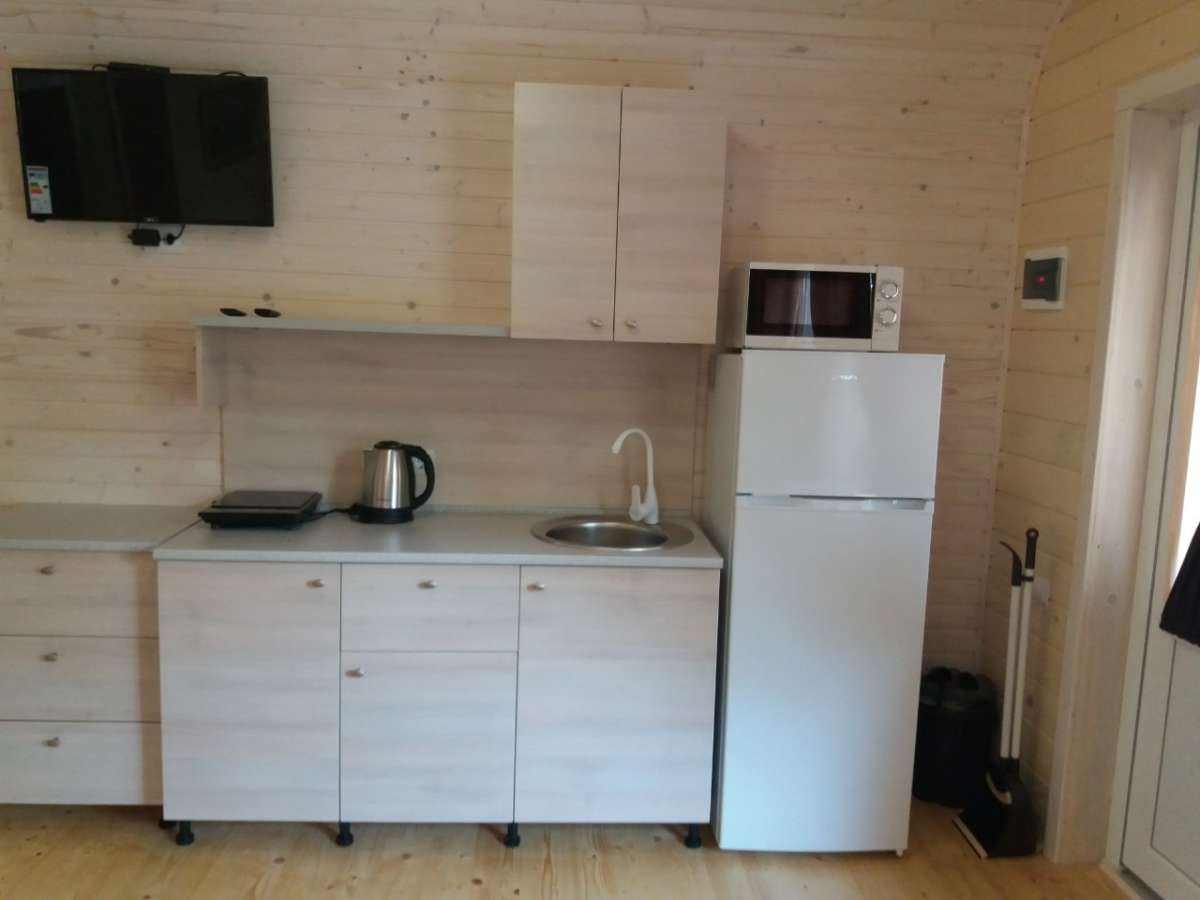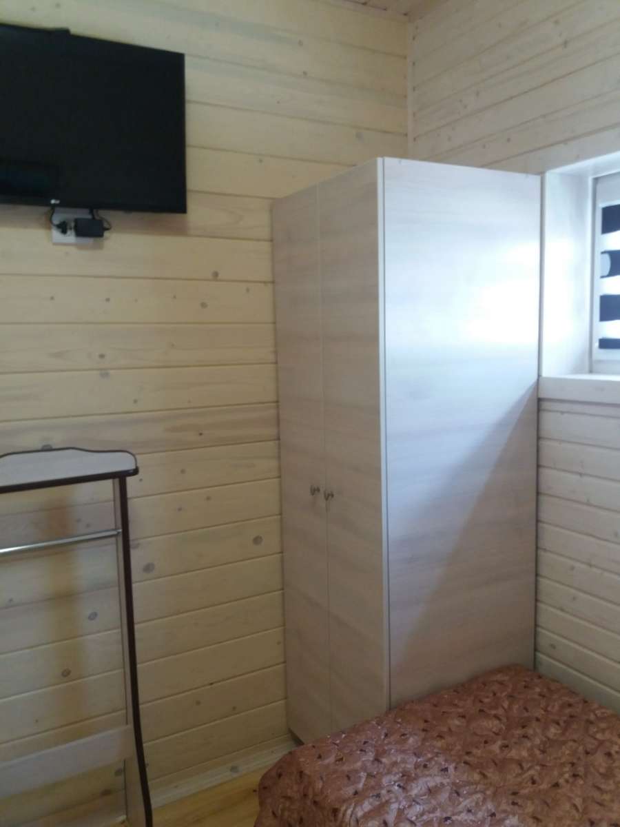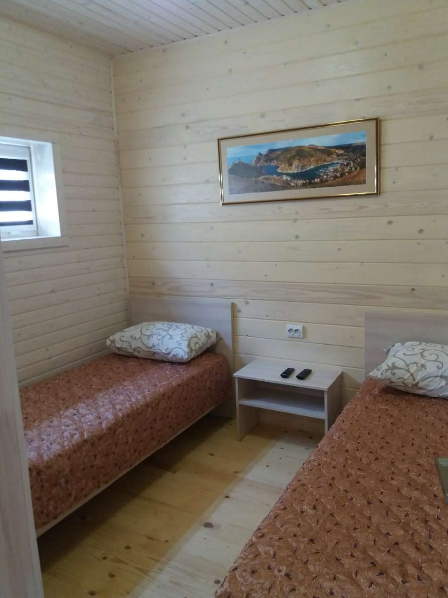 1 спальня + кухня Кухня-студия 2-хспал кровать, кресло-кровать, кухонный блок, эл.печка, эл.чайник, посуда, СВЧ, Х , К, ТВ В/нагр, полотенца, УДТ. Питьевая вода в номере. Спальня: 1+1 кровать. Большая терраса со столом и стульями, мангал. Стоянка для автомобиля. Заезд в 13:00, выезд в 11:00