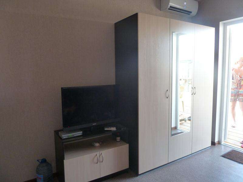 В номерах: кухонная стенка, электропечь, электрочайник, посуда, СВЧ, двухкамерный холодильник, водонагреватель, кондиционер, ТВ, двухспальный раскладной диван. Питьевая вода в номере. Бесплатный Wi-Fi. Спальня: двухспальная кровать. Терраса: стол, стулья, мангал, стоянка для автомобиля. Заезд в 13:00, выезд в 11:00