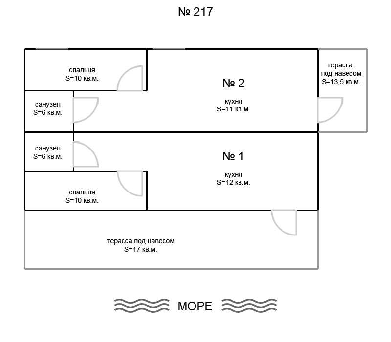 217 (1/2/3/4) Коттедж 4-хместный двухкомнатный