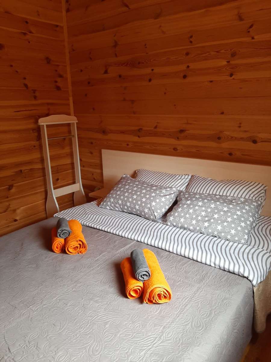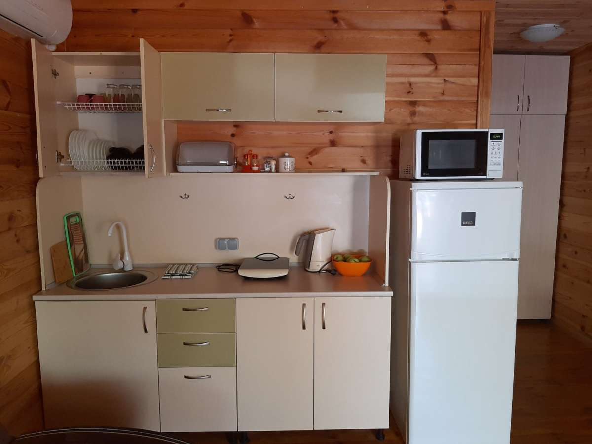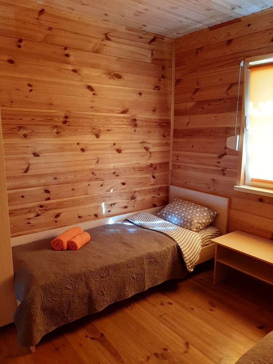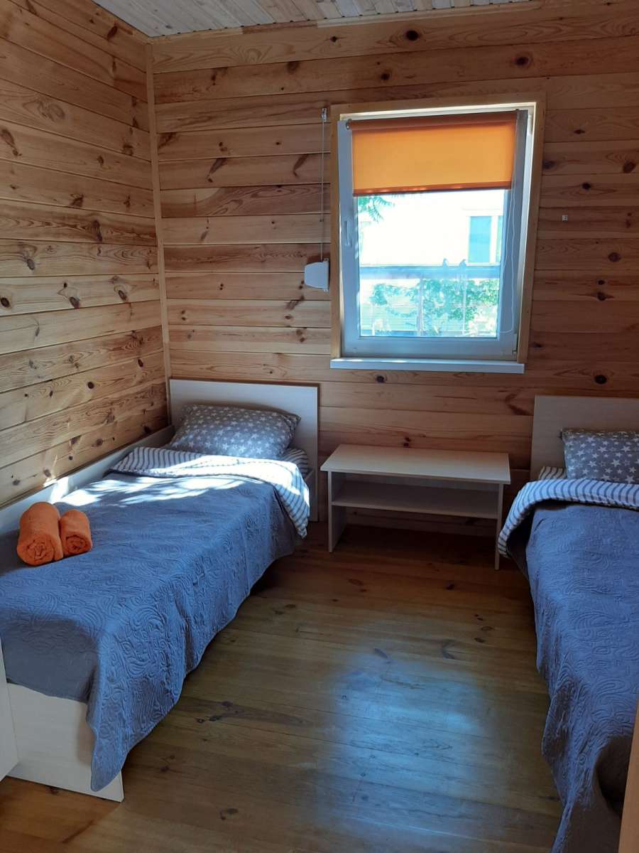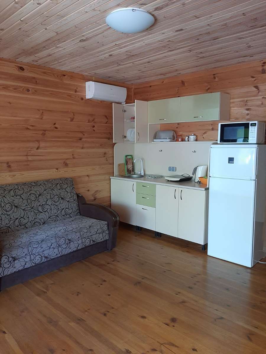 В номере: одна 2-хсп.кровать, вторая 1+1-носп. кровати + кухня. Х, эл.печка, посуда, К, ТВ, В/нагр, диванчик, навес, маскитки. УТД в номере. Детская площадка, территория ограждена, стоянка. Заезд в 13:00, выезд в 11:00