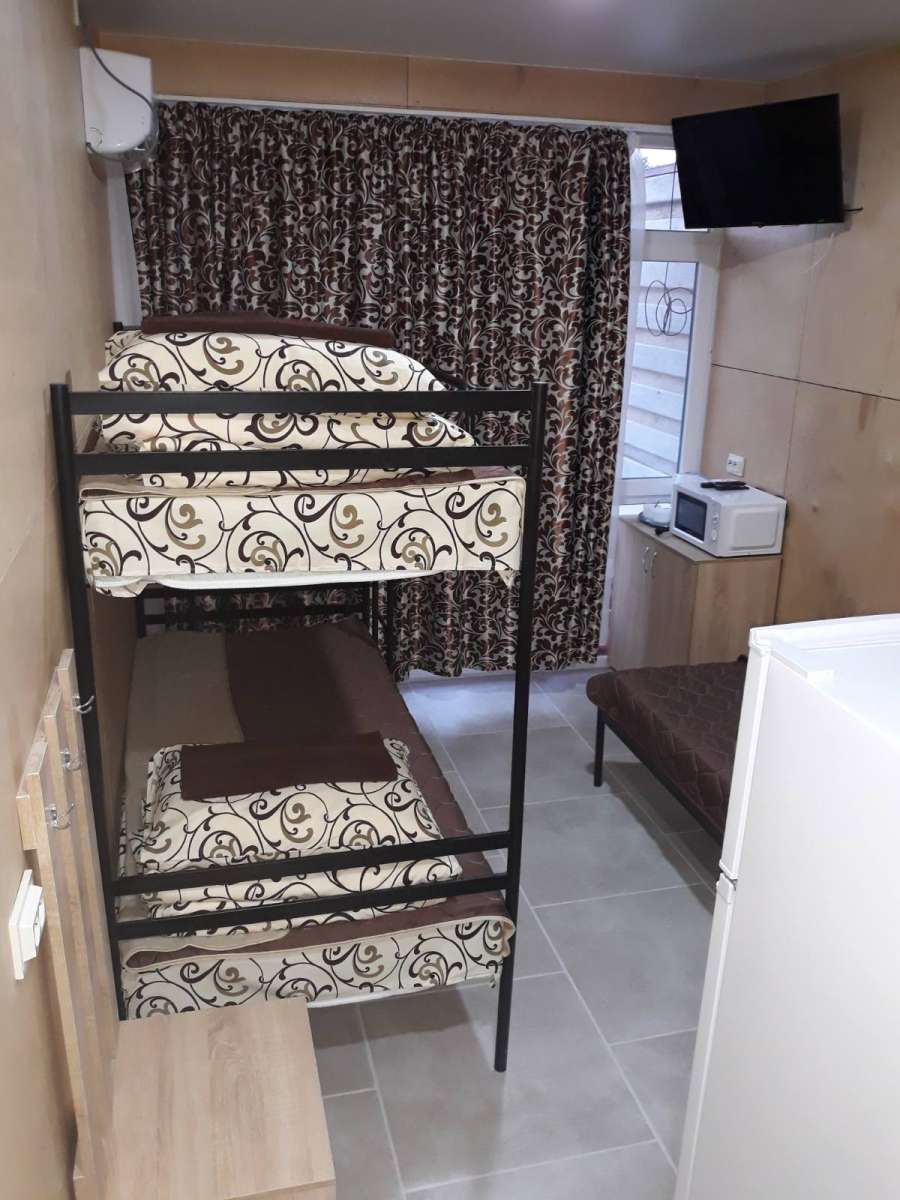 В номере: 2-хярусная кровать, односпальная кровать, Х, эл.чайник, СВЧ, К, ТВ, В/нагрев., УДТ. Заезд в 13:00, выезд в 11:00