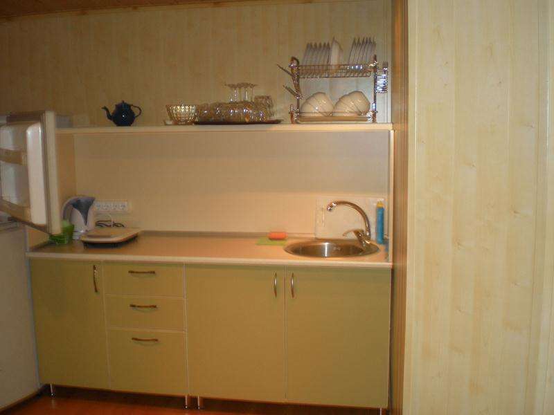 В номере: Кухня — электропечь, эл.чайник, посуда, 2-хкамерный холодильник, 2-х спальный раскладной диван. Спальня — 2-хспальная кровать,кондиционер, ТВ. Туалет, душ, умывальник, водонагреватель. Питьевая вода в номере. Огороженная территория. Стоянка для автомобиля при въезде на базу. Заезд в 13.00, выезд в 11.00