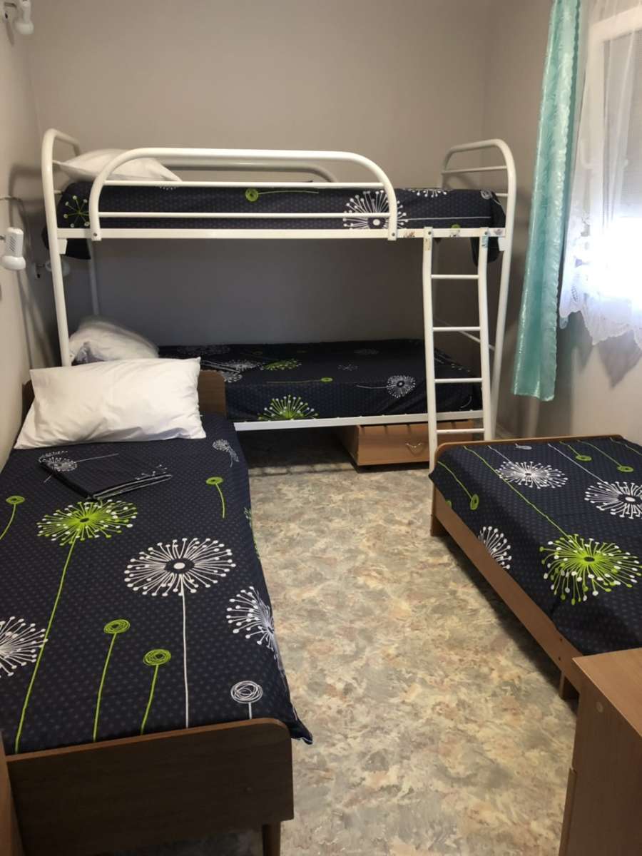 В номере: Спальня — 2-спальная кровать, спальня – 2-односпальных + 2-этажная кровать. Посуда, эл.печка, СВЧ, мультиварка, Х, 2 К, ТВ, мангал, парковка. Есть детская качелька. При необходимости есть детская кроватка. Огражденная территория. Уборка 1 раз в 6 дней. Смена белья 1 раз в 6 дней. Дополнительная уборка по договоренности. Стоянка для автомобиля. Заезд в 13.00, выезд в 11.00