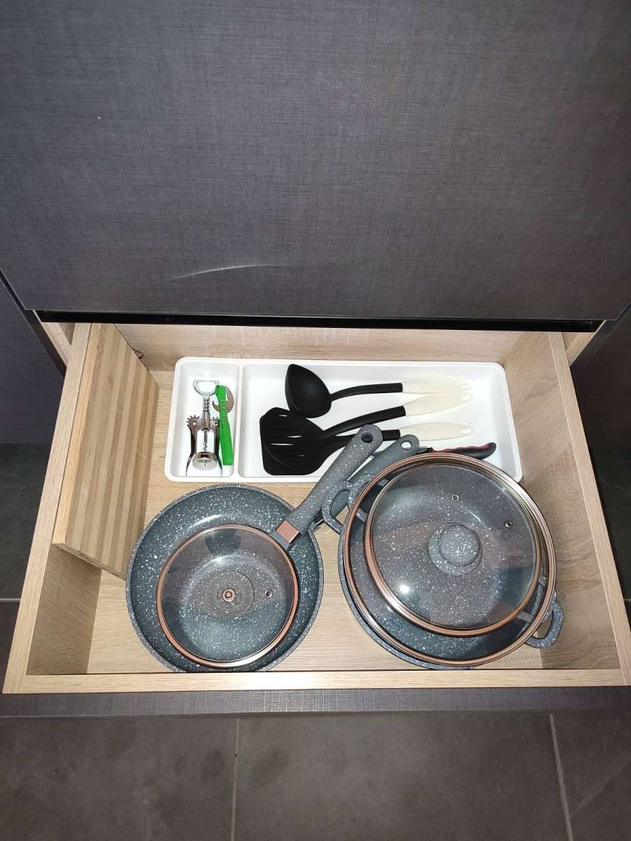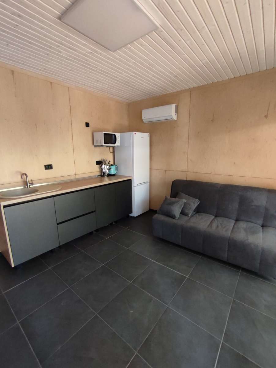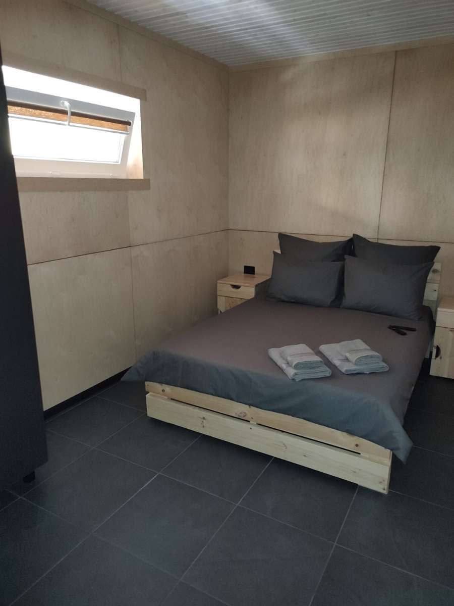 №3 — 6тиместный: Кухня-студио — Кухонная стенка, эл.печка, эл.чайник, посуда, СВЧ, Х, К, ТВ, В/нагр., полотенца, 2-хспал.диван, УТД. Спальня — 1+1 кровать, спальня — 2-хспальная кровать. Терраса со столом и стульями. Мангал. Стоянка для машин. Заезд в 13.00, выезд в 11.00