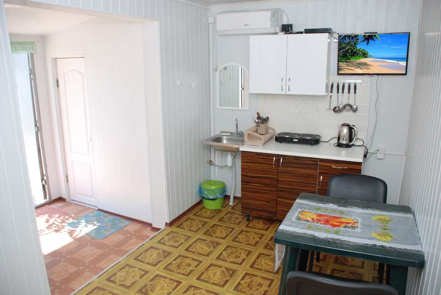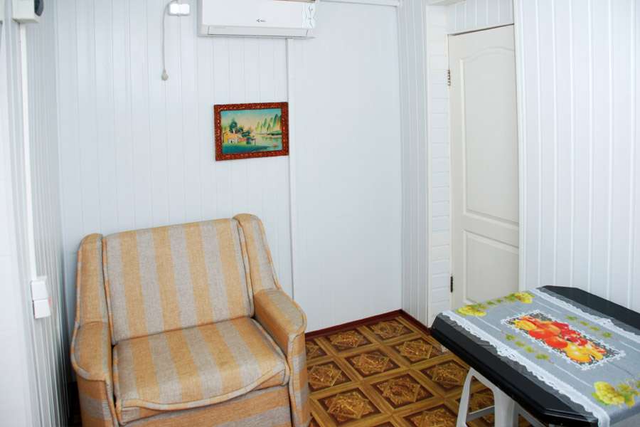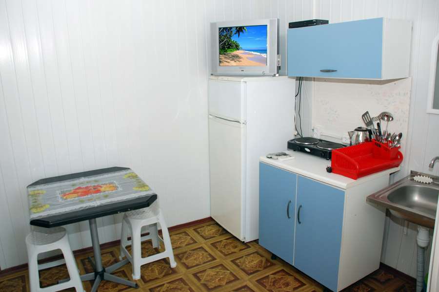 Мебель и оборудование: двуспальный раскладной диван или раскладное кресло, сплит-система, электропечь, двухкамерный холодильник, телевизор, полный комплект посуды для приготовления и приема пищи.