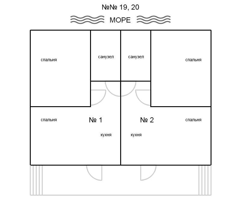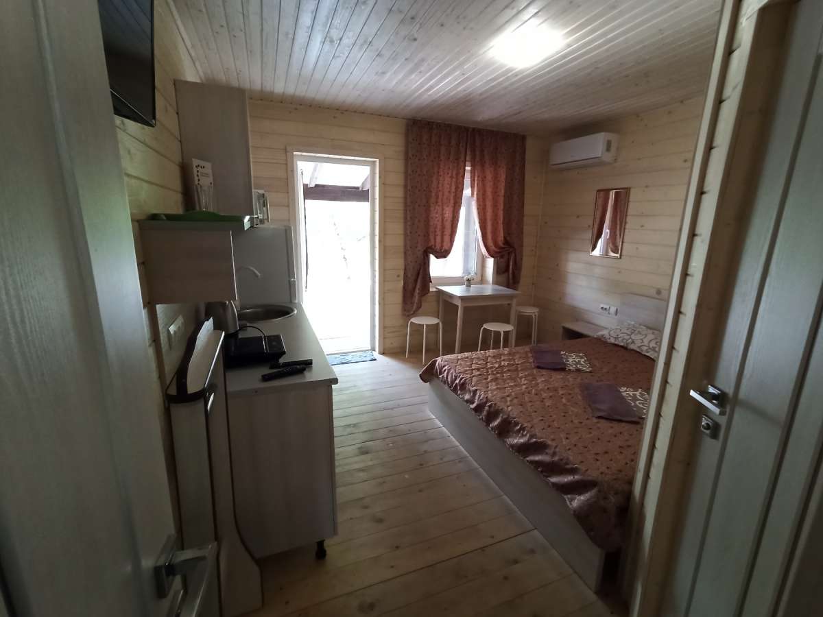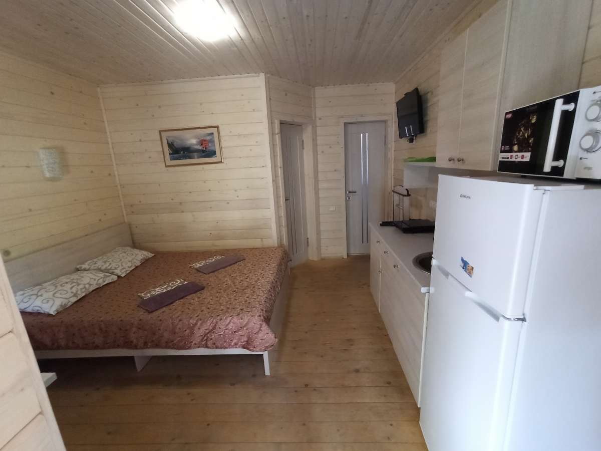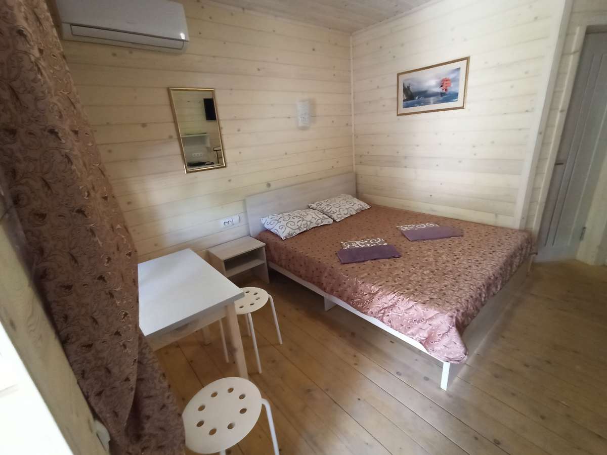 В номере: Спальня — 2 односпальные кровати. Кухня — электропечь, эл.чайник, СВЧ, посуда, 2-хкамерный холодильник, кондиционер, ТВ, двухспальная кровать. Туалет, душ, умывальник, водонагреватель. Питьевая вода в номере. Заезд в 13:00, выезд в 11:00