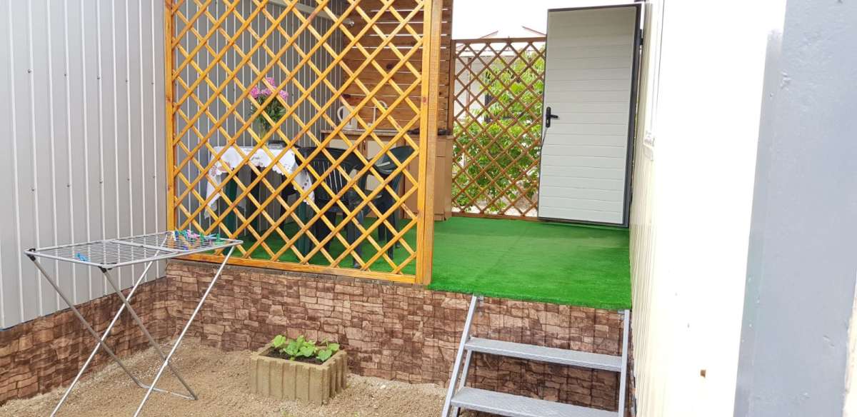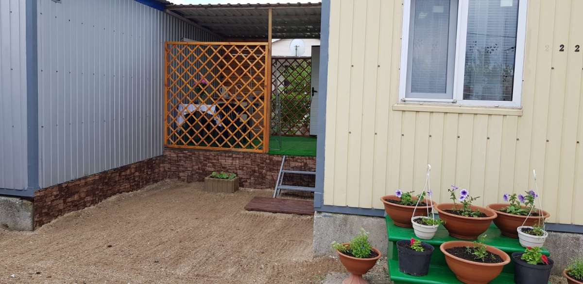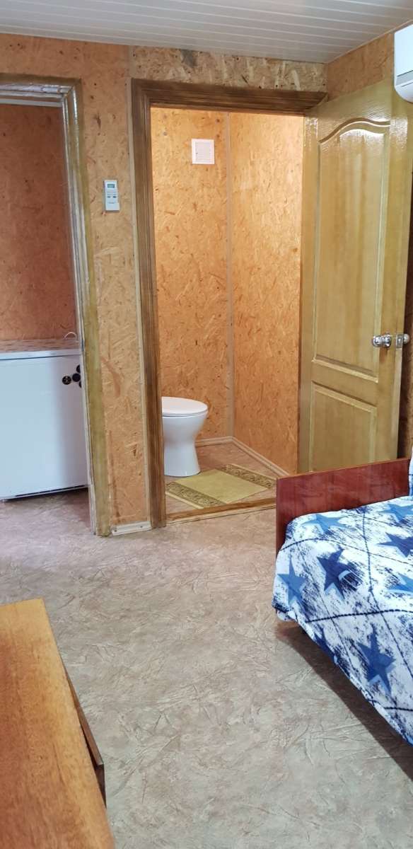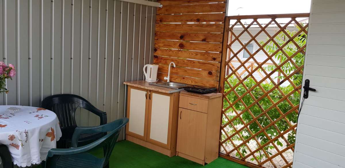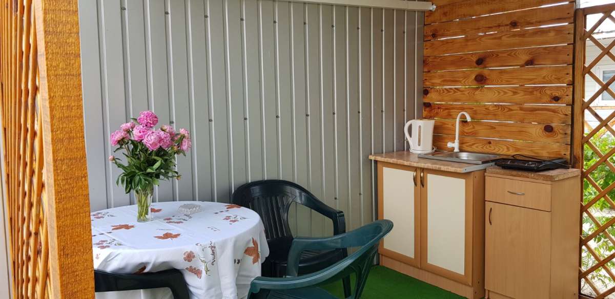 В номере: кондиционер, ТВ, электрочайник, холодильник. туалет. На веранде: электроплита, рукомойник, посуда, садовая мебель. Душ с престной водой на территории.