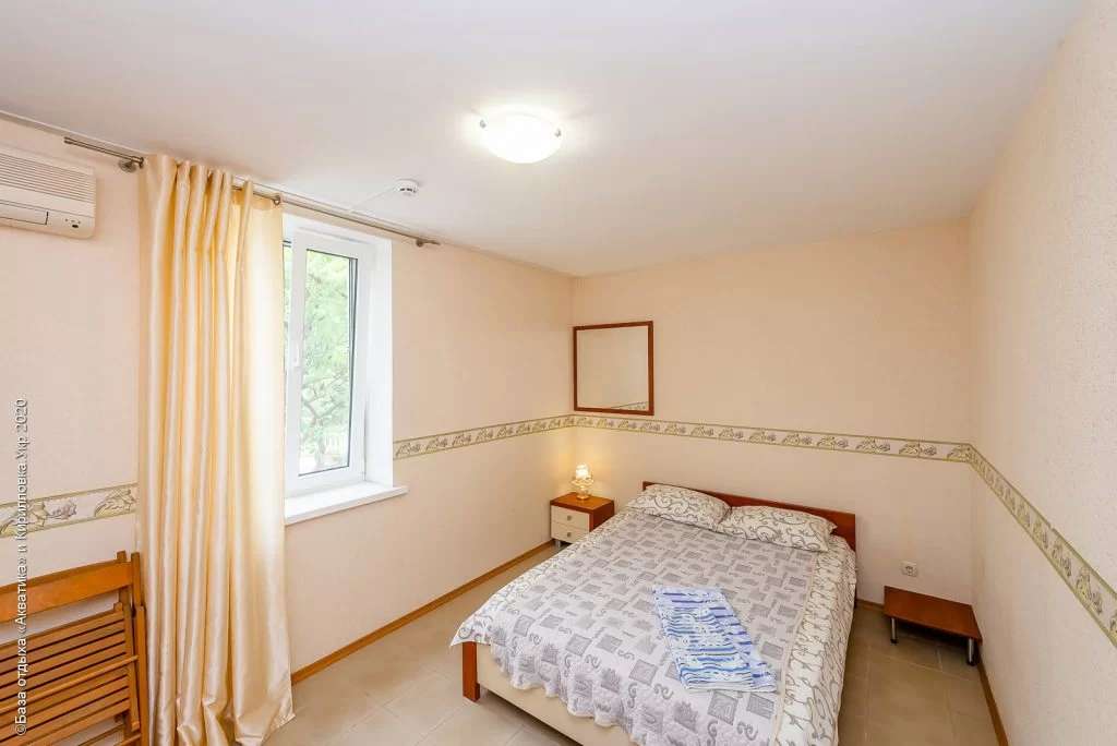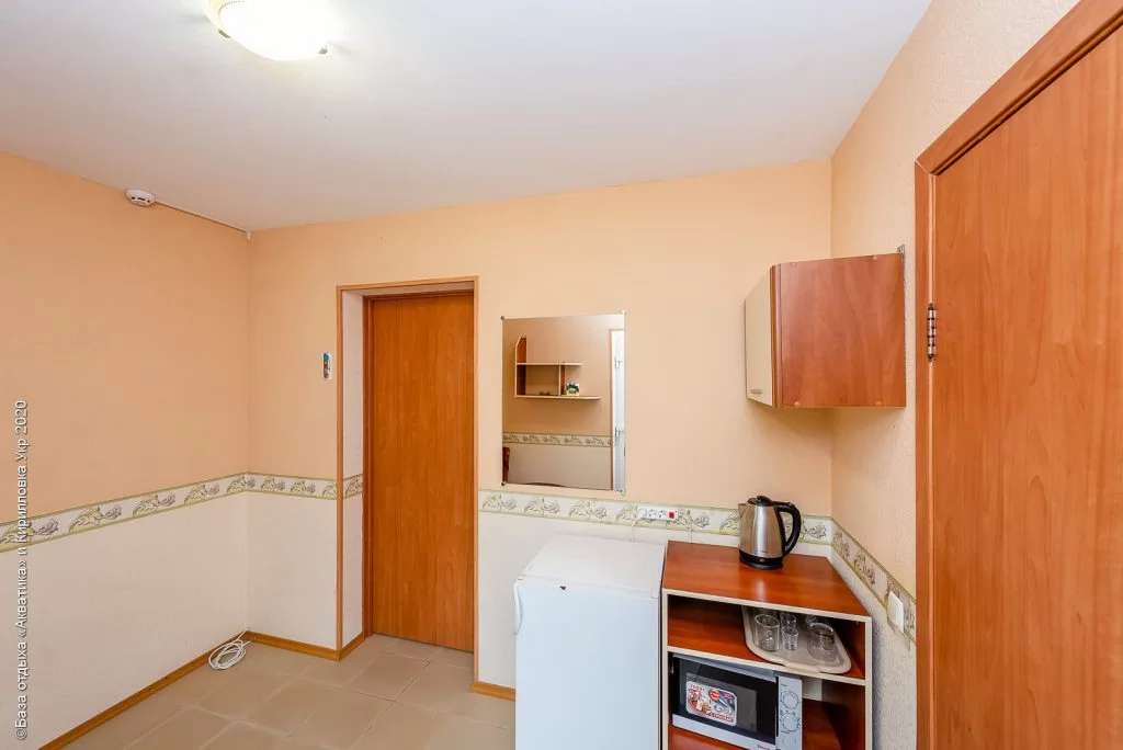 Комплектация: двуспальная кровать, кресло-кровать, необходимая мебель, сплит-система, телевизор, холодильник, электрочайник, микроволновая печь и фен.