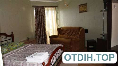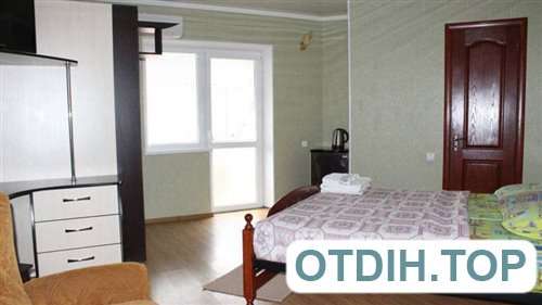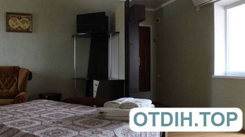 Угловой. оборудован мягкой мебелью, двуспальная кровать с ортопедическим матрацем, шкаф для одежды, журнальный столик, кондиционер, электрочайник, спутниковое ТВ ,WI-FI, микроволновая печь, холодильник.Набор необходимой посуды, постельные принадлежности. Санузел: душ, туалет, горячая и холодная вода (пресная) круглосуточно, набор полотенец. Два Балкона- один из них оборудован столами и стульями.