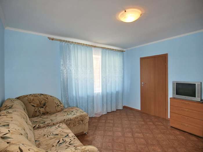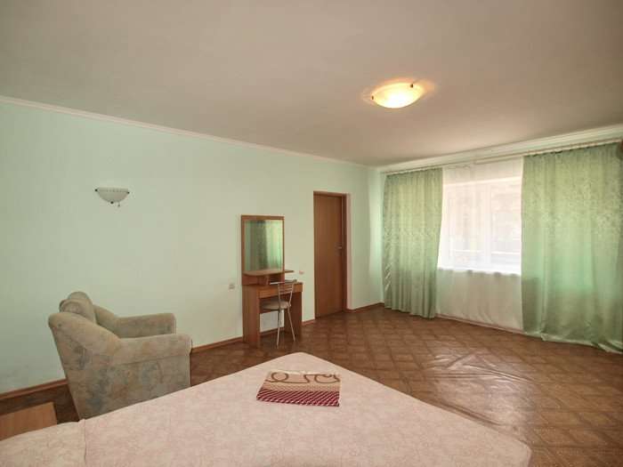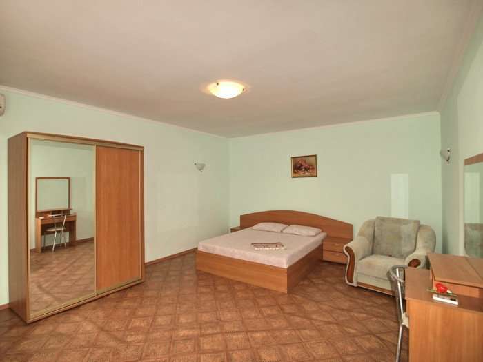 Номер полулюкс двухкомнатный базы отдыха Бриз в Кирилловке расположен на первом этаже двухэтажного коттеджа. Пляж в 40 метрах.