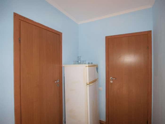 Санузел: душевая кабинка, туалет, умывальник. Подача холодной и горячей воды круглосуточно. В каждом номере комплекты постельного