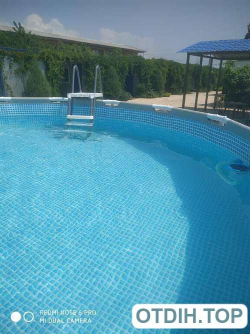 Во дворе находятся открытый бассейн, общая укомплектованная всем необходимым кухня, бар, беседки и качели. Гости могут воспользоваться мангалами и шампурами, есть доступ к Wi-Fi и парковке. Разрешено поселение с домашними питомцами.