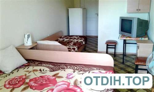 Проживание. для проживания отдыхающих в наличии есть 10 номеров повышенной комфортности, где с удобствами могут разместиться 2-3, а также 4 и 6 человек. Каждый номер оборудован комплектом необходимой мебели, комфортными кроватями, прикроватными тумбочками и шкафами для одежды. В номере есть телевизор, холодильник и кондиционер. Отдыхающие обеспечиваются постельным бельем. В наличии санузел полной комплектации. а также круглосуточная подача пресной горячей и холодной воды.