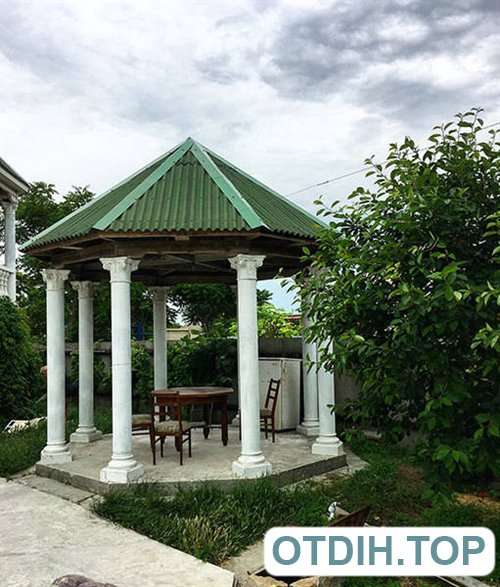 Двор гостевого дома огорожен и охраняем, вмещает парковку, спортивную площадку, беседку.