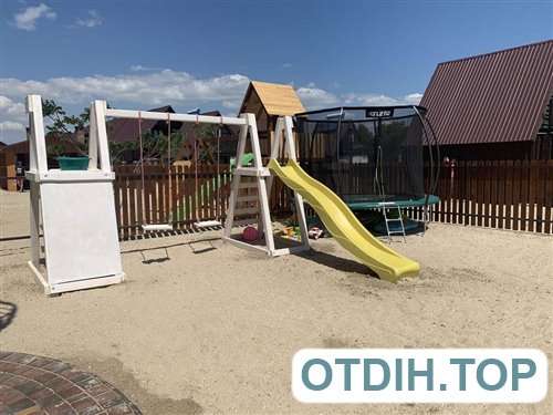 Территория гостевого дома «Аладдин» оборудована детской площадкой, качелями и бабутом. Кроме того, предусмотрена беседка для отдыха, парковка для авто и мангал с инвентарем.