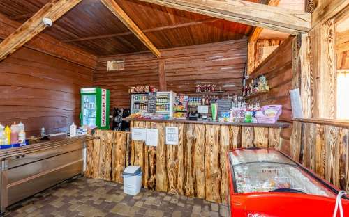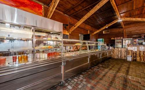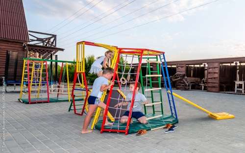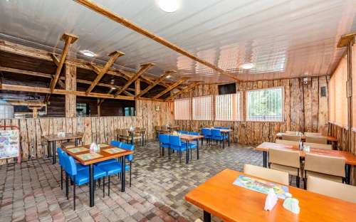 На базе есть кафе-столовая, где вы сможете перекусить так и заказать трехразовое питание, а так же в каждом номере есть кухня где вы сможете сами приготовить себе еду. Для детей у нас на территории имеется детская площадка, а те кто хочет приготовить блюда на костре у нас установлены мангалы в специально отведенных для этого местах.
