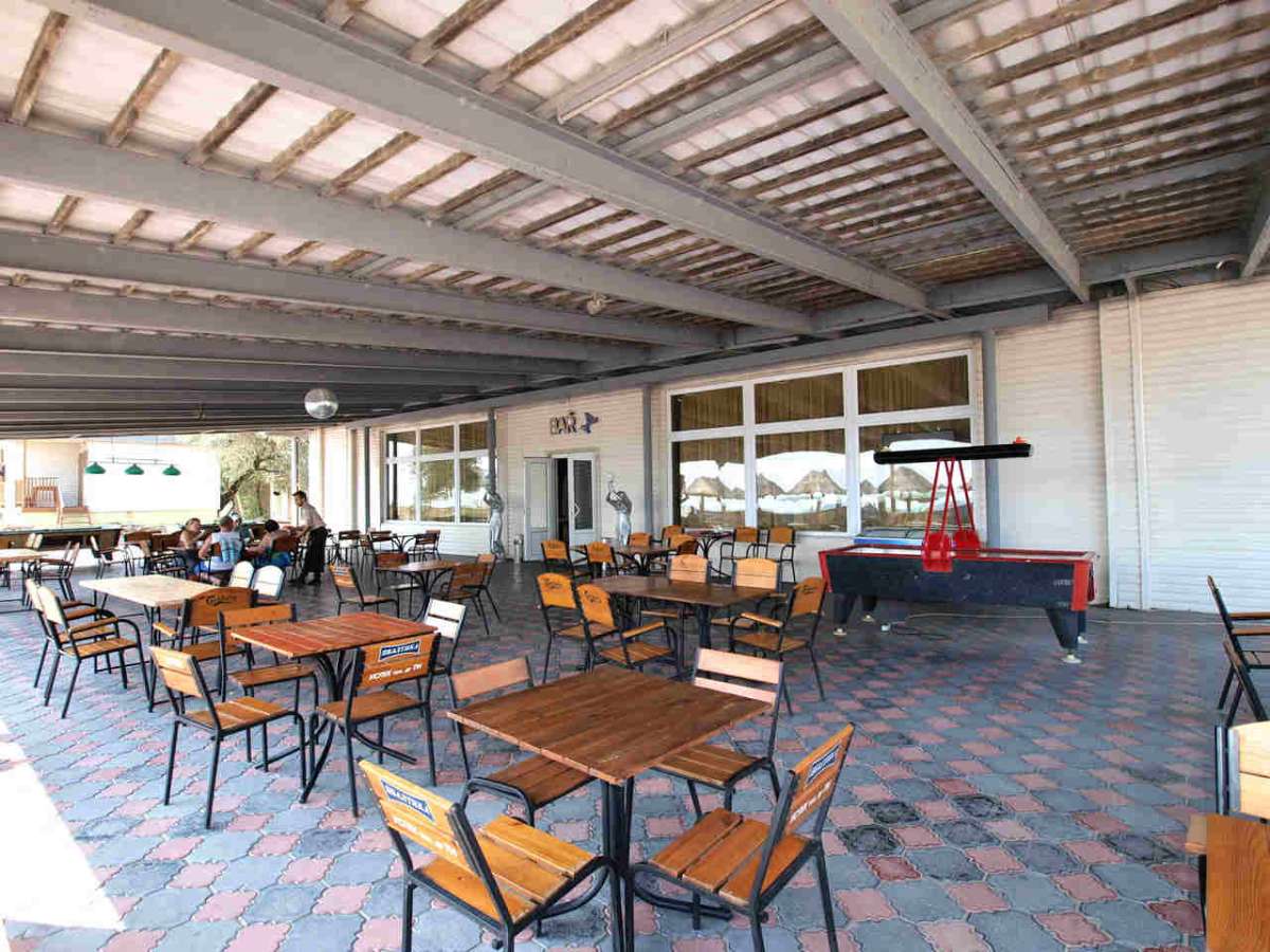 Питание на базе предлагается всем постояльцам три раза в день, стоимость услуги включается в стоимость проживания ( услуга актуальна при заезде не меньше чем на три дня ). Столовая обязательно понравиться вам благодаря разнообразия меню и обилием различных блюд. Так же для наших гостей предусмотрен фрешбар, летние кафе, кафе-ресторан, которые предложат вам блюда как и украинской, так же и европейской кухни.