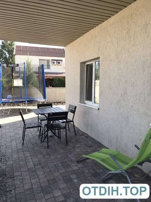 На территории дома все необходимое: терраса под навесом, мангал, стол и стулья, батут, игрушки для детей. На территории базы в основном частные дома- немного людей, очень зелёная зона, деревья, цветы, до моря 5 минут ходьбы, берег — песок, хороший заход и теплое море. В 5 минутах ходьбы магазин со всем необходимым, ресторан, столовые, водные горки.