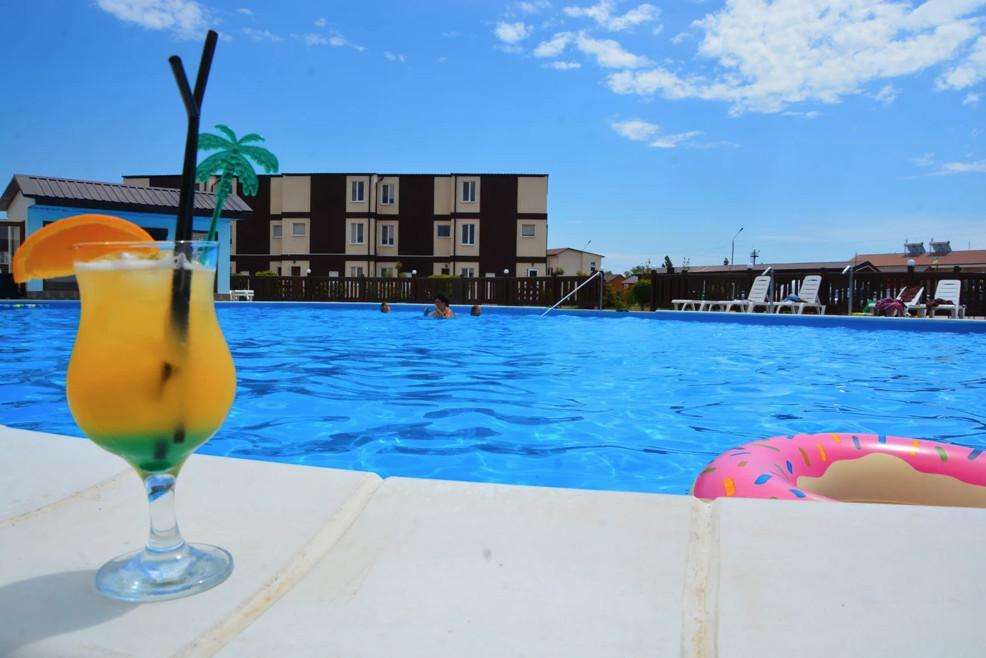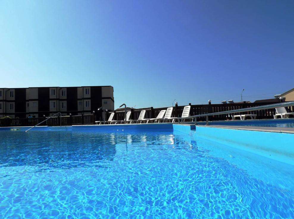 - бассейн с зонами для деток, лежаками, зонтами, баром и аниматорами;