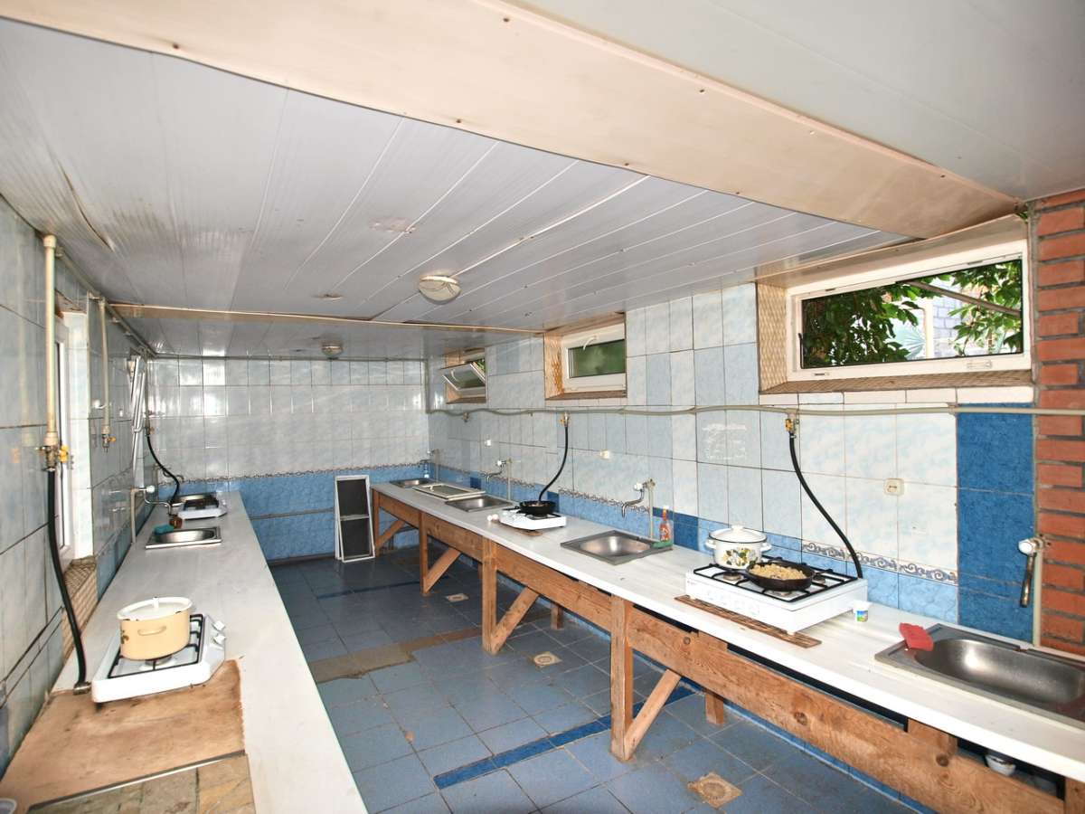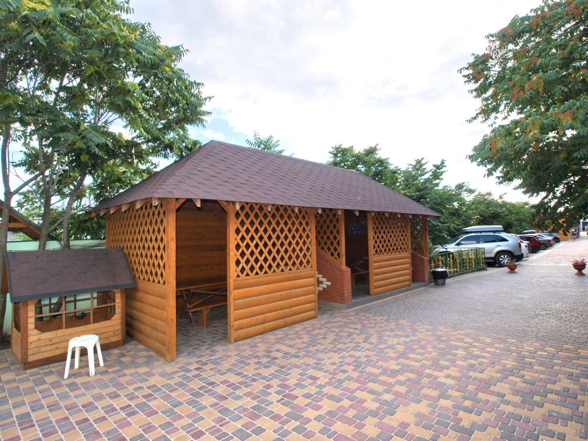 Территория Базы отдыха ухожена, обустроена беседками усажена различной зеленью, клумбами с множеством красивых цветов, имеется фонтан, море буквально в дух шагах, а так же зоны для приготовления блюд на огне, которые обустроены беседками с мангалами. Вы так же можете сыграть в настольный теннис либо взять напрокат велосипед, для прогулки по Федотовой косе и что бы поехать полюбоваться пейзажами это то что нужно. Территория круглосуточно охраняется.