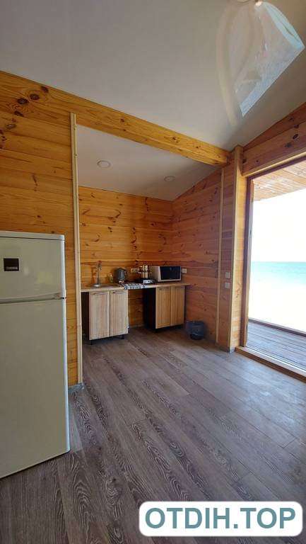 Каждый из домиков рассчитан на четырех гостей, имеет отдельный вход с меблированной террасой с видом на море.