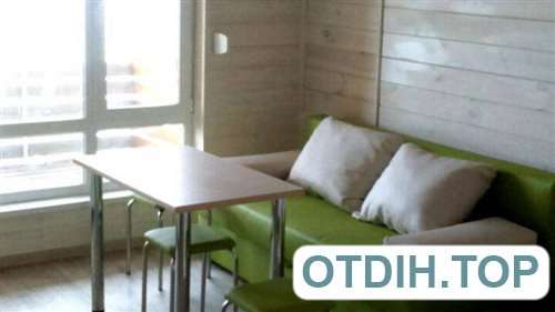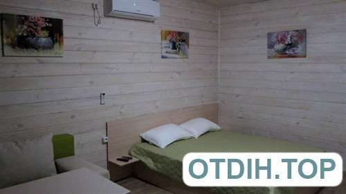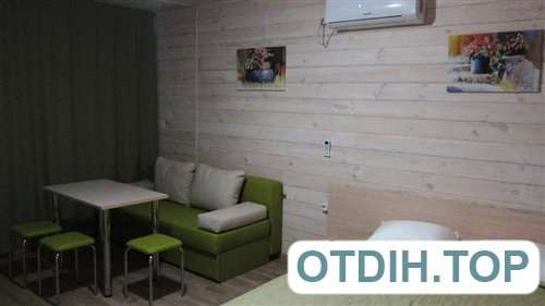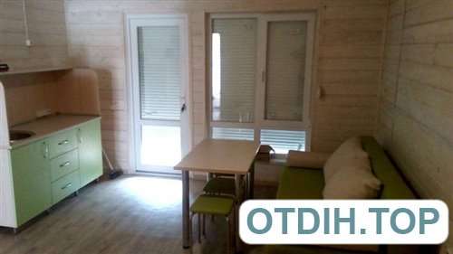 Состоит из холла-студии и спальни. В холле есть оборудованная кухонная зона с необходимым оборудованием и посудой. Есть обеденный стол, двуспальная кровать и раскладной диван. Телевизор 32-дюймовый со спутниковыми каналами. В спальне две односпальные кровати с ортопедическими матрасами. В номере есть санузел полной комплектации с бесперебойной подачей горячей и холодной воды. Большой зеркальный шкаф-купе, холодильник с морозильной камерой, кондиционер, электрочайник и СВЧ-печь. На террасе есть комплект мебели для отдыха.