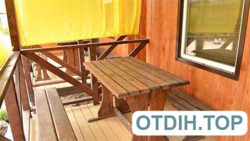 В домиках класса полу люкс есть своя терраса с кухней, постельное белье, полотенца, кондиционер, холодильник, посуда, электро плита, микроволновая печь, электро чайник, телевизор и спутниковое телевидение, фен. Удобства на территории. Интернет ловит на всей территории.