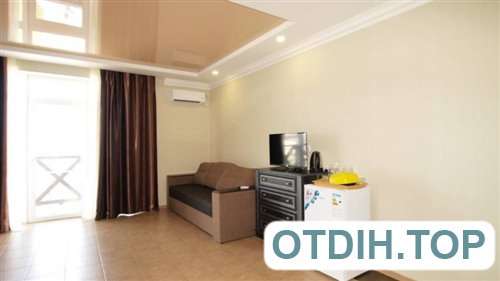 Однокомнатные номера c видом на море (40 кв.м.) находятся в трехэтажном корпусе. Комната с двуспальной кроватью, диваном, мебельным гарнитуром. Санузел с душевой кабиной. Большой балкон.