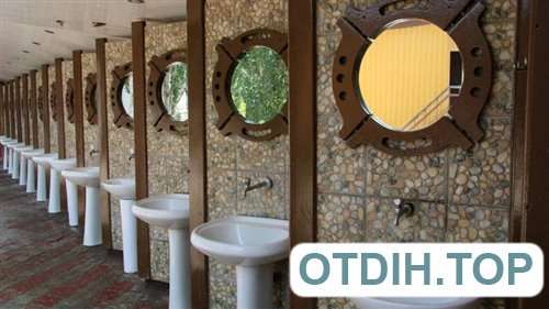 Номера в трехэтажном кирпичном корпусе. Две односпальные кровати, две прикроватные тумбочки, шкафдвухдверный, кондиционер, холодильник, телевизор, стулья, выход из номера на террасу. Душ с (горячей водой по графику). Туалет находятся в 10 м. от корпуса.