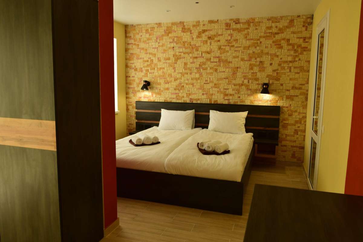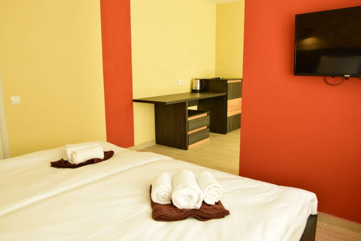 Супериор Мини — новые стильные номера с ремонтом 2020 года с кроватью king-size. Все номера оборудованы необходимой мебелью, техникой и имеют собственный санузел. Номера расположены на первом этаже знания, каждый из них имеет собственный вход с улицы.