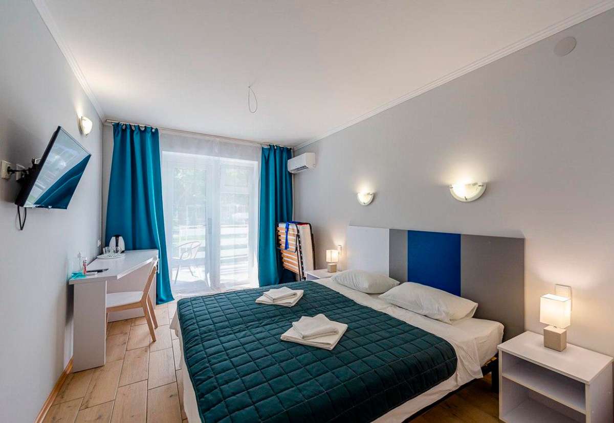 Однокомнатный номер общей площадью 19 м2 с видом на море идеально подходит для семейного отдыха. В номере: Двуспальная или две односпальные кровати, кресло-кровать, плоский телевизор со спутниковыми каналами, индивидуальный кондиционер, рабочее место, стул, шкаф для одежды, набор для приготовления чая и кофе, холодильник, меблированный балкон со столом и двумя креслами. В ванной комнате: душ, унитаз, умывальник, банные принадлежности, фен и полотенца. Стоимость номера: Опубликованный тариф стойки за ночь. В отеле действуют специальные предложения в зависимости от сроков пребывания, просим уточнять актуальную информацию в службе бронирования и на сайте. Ранний заезд и поздний выезд возможен за 50% от стоимости при наличии свободных номеров. Расчетное время с 14:00 до 12:00. В стоимость включены: Двухместное проживание, пользование бассейном, пользование пляжем, детская игровая и анимация, парковка автомобиля, услуги подноса багажа, налоги. В стоимость не включен: Туристический сбор не включен в стоимость проживания и начисляется дополнительно согласно действующих решений органов местного самоуправления и законодательства Украины: посуточно 7,20 гривен за каждого украинского гостя и 30 гривен за иностранного, оплачивается дополнительно авансовым платежом и для Вашего удобства будет по умолчанию включен в счет за услуги в размере суммы за резидента Украины, иностранным гостям необходимо оплатить разницу в отеле. Не начисляется детям до 18 лет и льготным гостям. Дополнительное место: Дети до 6 лет размещаются со взрослыми бесплатно, за гостя от 7 до 12 лет ежедневно оплачивается дополнительное спальное место — 200 гривен, за гостя от 13 лет – 300 гривен. Пребывание с домашним питомцем: За одного питомца — 300 гривен единоразово за весь период отдыха. Размещение гостей в номере: SNGL — одноместное (1); TWIN — двухместное на раздельных кроватях (1+1); DBL King — двухместное на одной кровати (2); TRPL — трехместное (2+1); Baby — детская кровать по запросу.