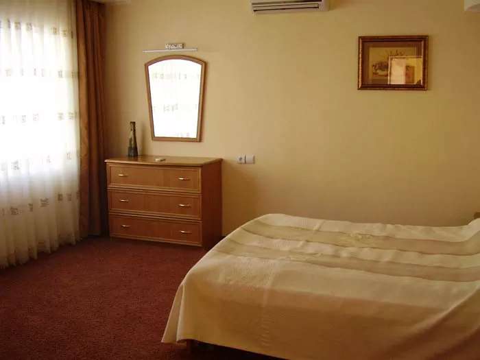 Спальня с двуспальной кроватью, кондиционер, санузел (душевая кабина «Шарко», туалет, умывальник, подача холодной и горячей воды круглосуточно).