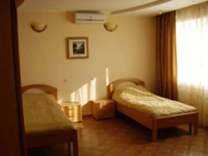 Спальня с двумя раздельными кроватями, кондиционер, санузел (душевая кабина, туалет, умывальник, подача холодной и горячей воды круглосуточно).