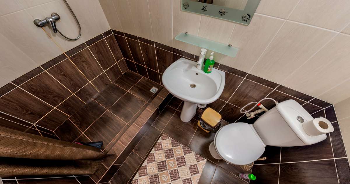 В совмещенном санузле номеров (5 кв. м.): душевая кабина, унитаз, умывальник, биде, фен, набор банных полотенец. Вода — пресная, подающаяся из собственной опреснительной системы, горячая вода — круглосуточно.