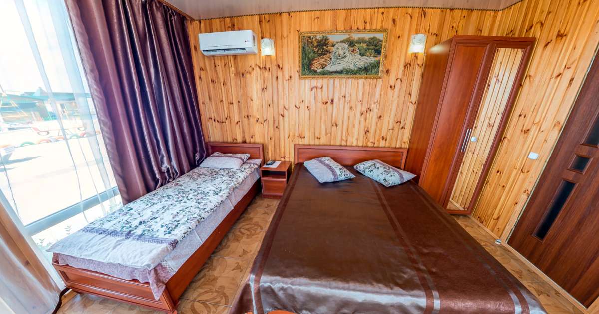 Комплектация номеров (21 кв. м.): двуспальная кровать 180*200 см, шкаф купэ с тремпелями для одежды, LCD-телевизор 40” со спутниковыми каналами, кондиционер.