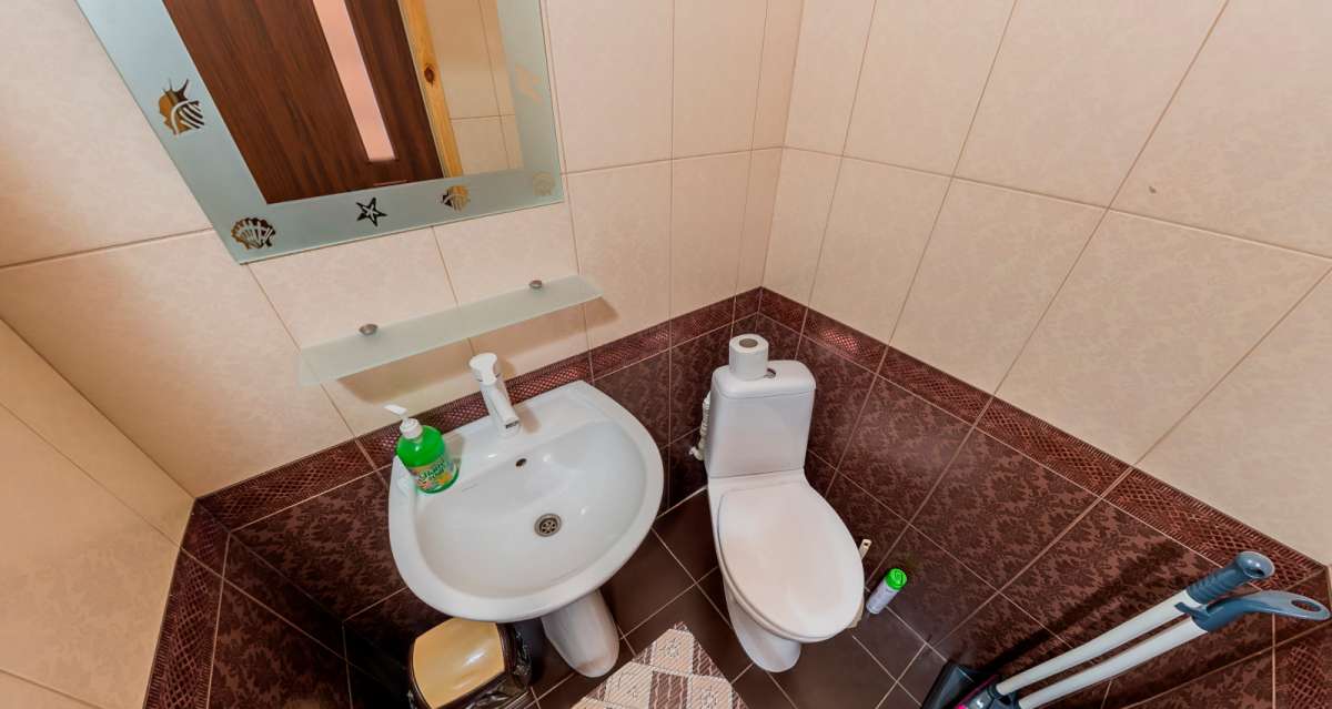 В совмещенном санузле номеров площадью 7 кв. м.: душевая кабина, унитаз, умывальник, биде, фен, набор банных полотенец. Вода ― пресная, подающаяся из собственной опреснительной системы, горячая вода ― круглосуточно.