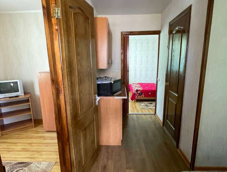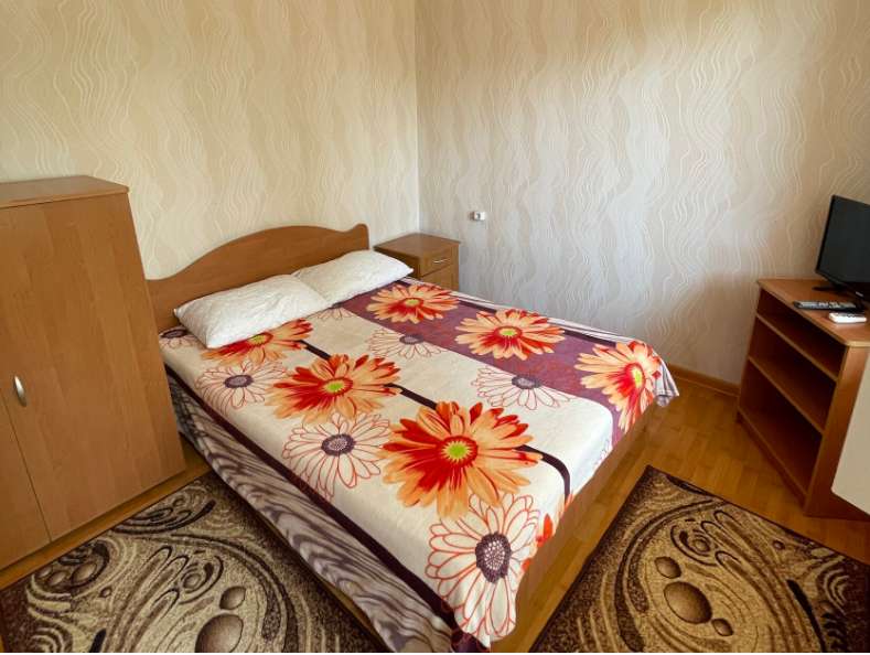 В номере: 2 спальни, санузел, кухня, кондиционер, ТВ, холодильник, электроплита, весь необходимый кухонный инвентарь, инвентарь для уборки.
