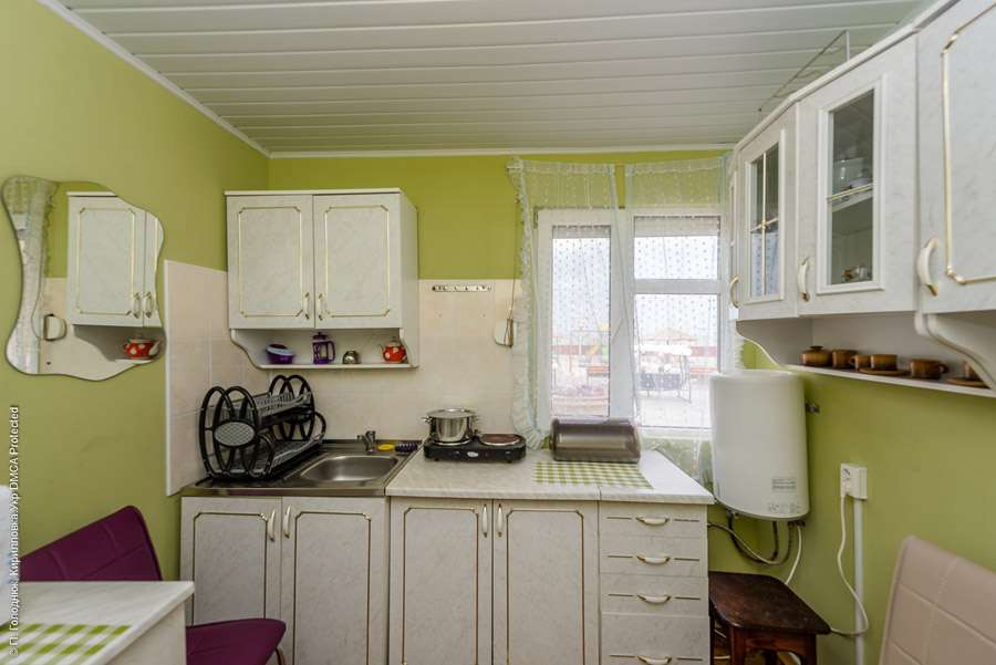 Мебель и оборудование: СВЧ-печь, газовая печь, двухкамерный холодильник, полный комплект посуды для приготовления и приема пищи.
