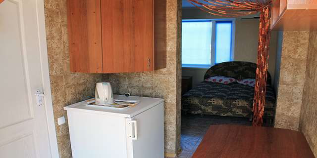 10 однокомнатных номеров (трёхместных) и 2 двухкомнатных номера (шестиместных). В каждом номере мягкая, корпусная мебель, сплит-система, телевизор, кондиционер. 1.08-25.08 — 1000 грн. 25.08-01.09 — 700 грн. С 01.09 — 500 грн.