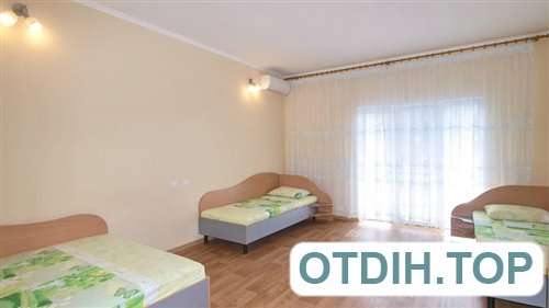 Площадь номера 32 м 2. Состоит из: спальни, кухни, санузла и балкона. В номере: две односпальные кровати и 2-х спальная кровать, комод, шкаф, туалетный столик, холодильник, индукционная плита, посуда, кондиционер (сплит-система), спутниковое TV, WI-FI, горячая и холодная вода – пресная и подается круглосуточно.