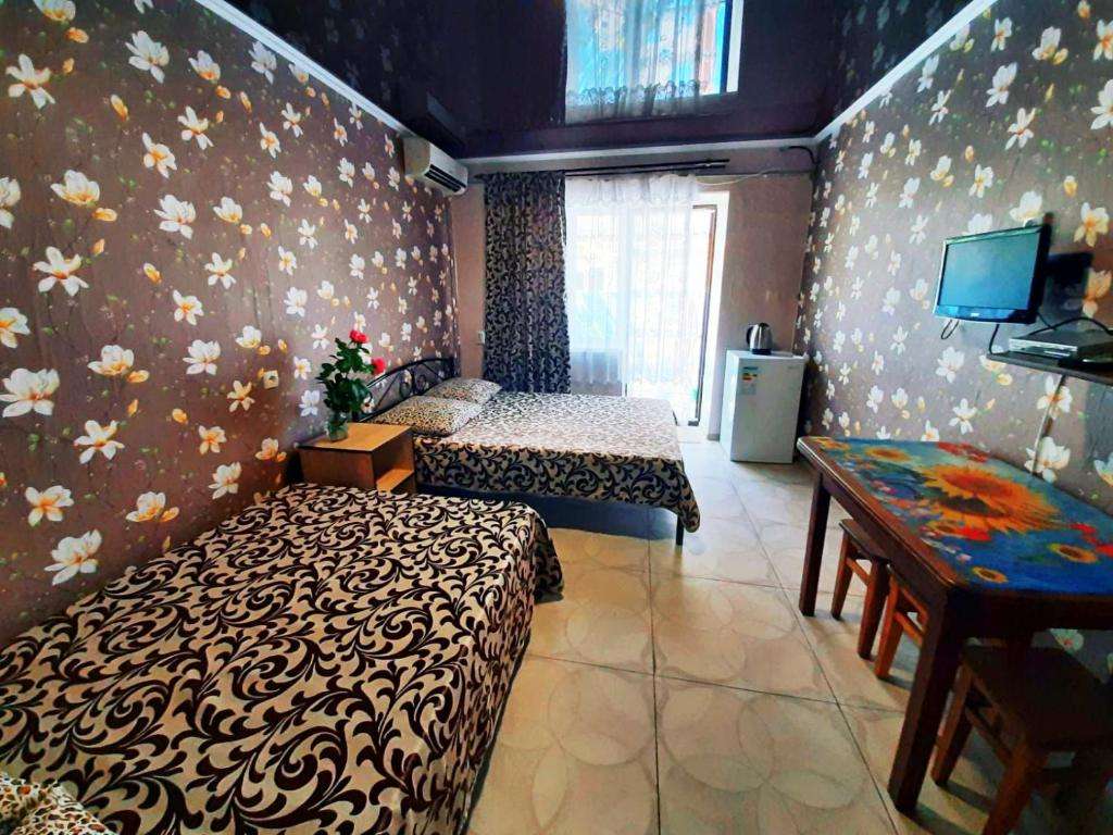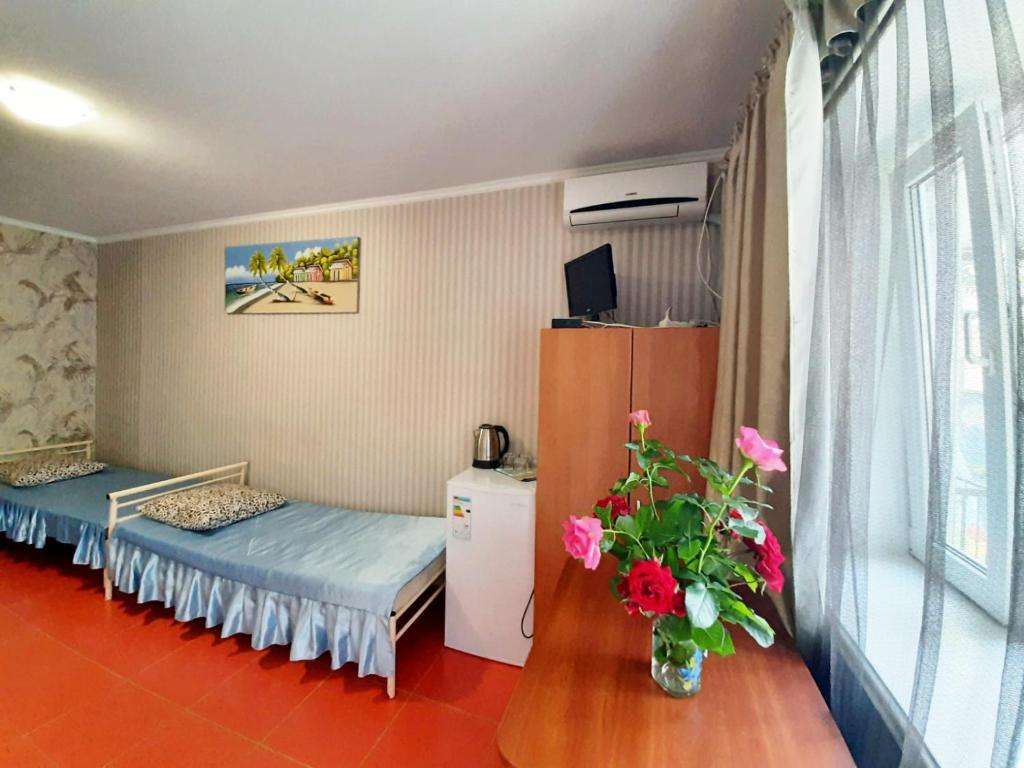 Четырехместный номер с видом на сад, кондиционером и электрическим чайником.