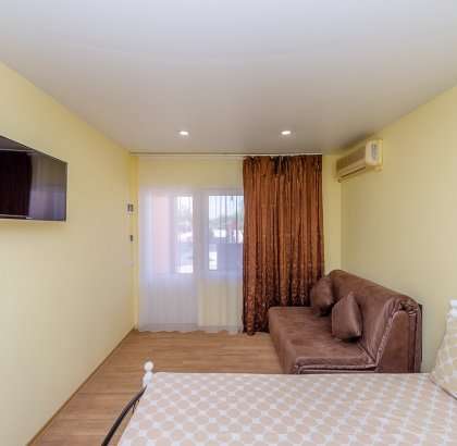 База отдыха "Акватория" в Кирилловке на Федотовой косе предлагает провести отпуск в номере Люкс-студия 2+2. У нас на базе: