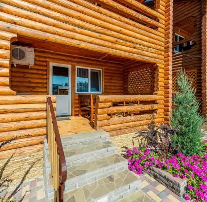 Это номера Люкс в срубах 4-х местный улучшенный в Кирилловке на Федотовой косе высочайшего класса, повышенной комфортности и максимального удобства! Все помещения оборудованы централизованной противопожарной сигнализацией и огнетушителем.