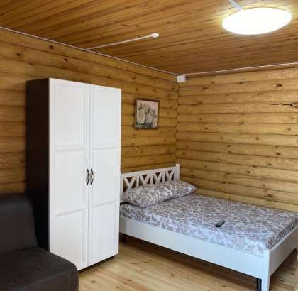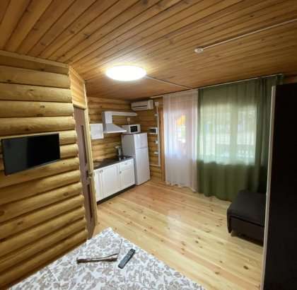 База отдыха "Акватория" в Кирилловке на Федотовой косе предлагает провести отпуск в трехместном номере Люкс в срубах 2+1 (улучшенный). У нас на базе: