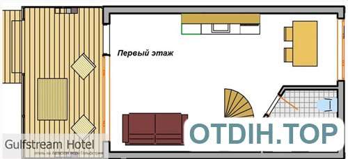 В номере: Терраса, Сейф, Спутниковое\кабельное TV, Двухуровневый номер, Фен, Гор./хол. вода круглосуточно, Холодильник, Кондиционер\сплит-система, Санузел полной комплектации, Балкон, Кухня.